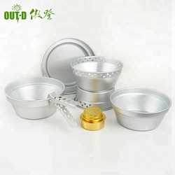 Conjunto de panelas de acampamento com revestimento antiaderente de alumínio portátil para piquenique